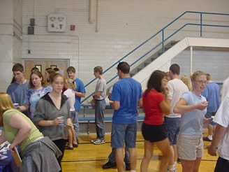 Students enjoying the free refreshments.