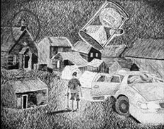 created ink drawings that correspond with the play, I Never Saw