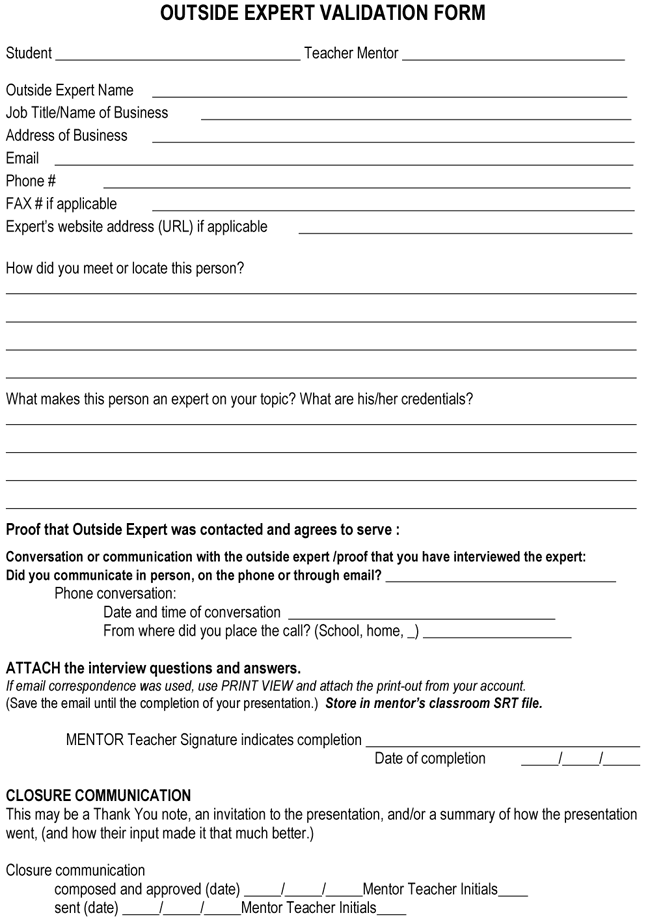 > Outside Expert Validation Form